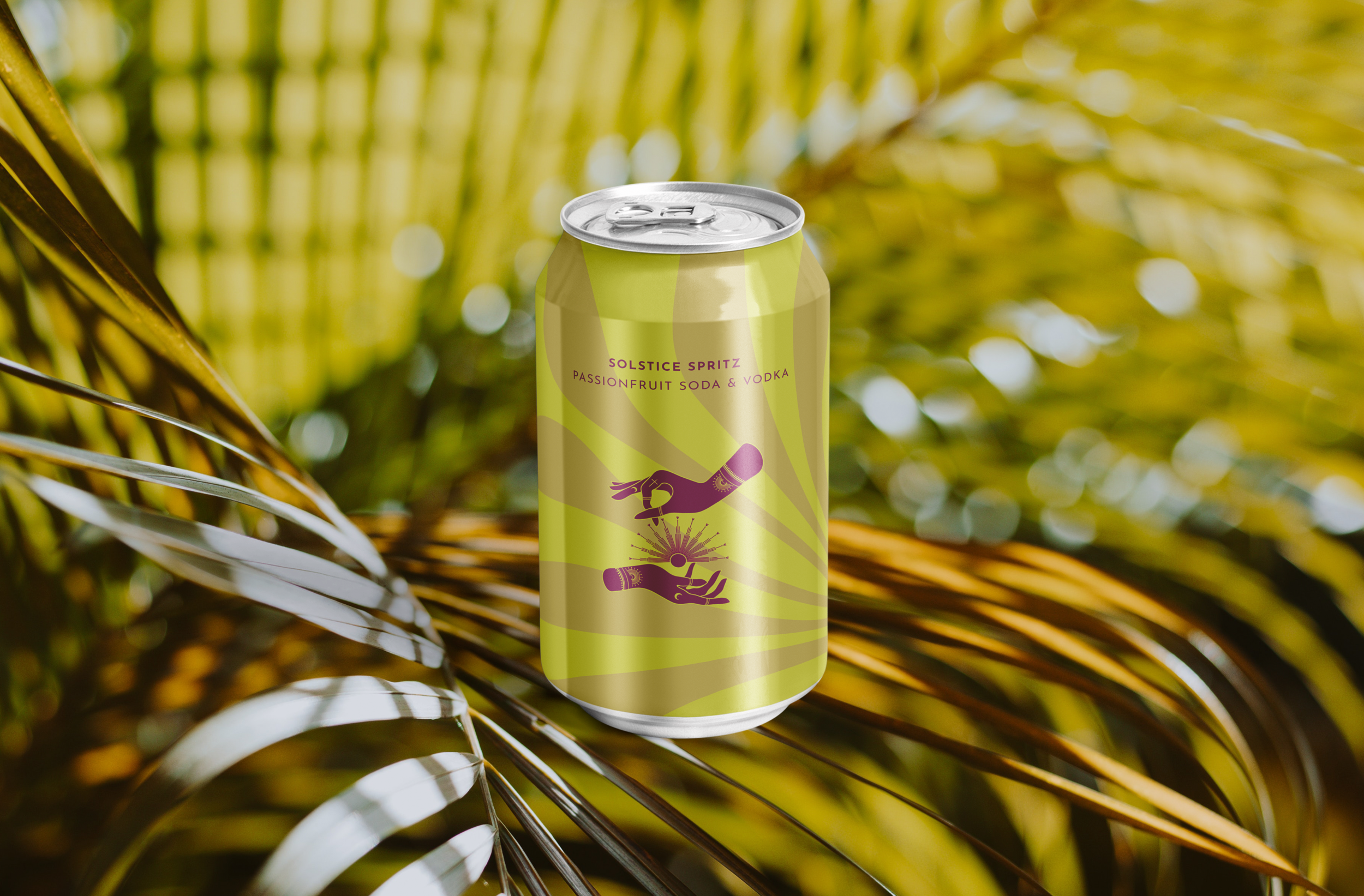 This first variation of Solstice Spritz has a more basic look, allowing the viewer to focus on the colours and the illustrations on each can. The text used in the variation is Roboto Mono, an old typewriting text that had been modernised.